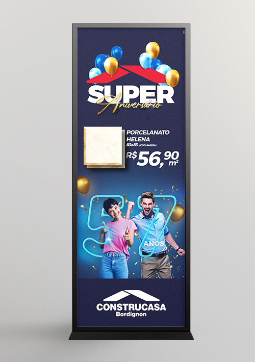 Com mais de 50 anos de história, a Construcasa Bordignon sabe criar o clima perfeito para celebrar seu aniversário. E foi essa expertise que buscamos para criar uma campanha vibrante e presente em diferentes meios on e off-line, que conseguiu engajar todos os seus colaboradores e entregar ofertas especiais para seus clientes, nos mais diversos segmentos de acabamento e construção. O superaniversário combinou diferentes esforços de mídia para trazer o resultado que uma gigante do varejo precisa.